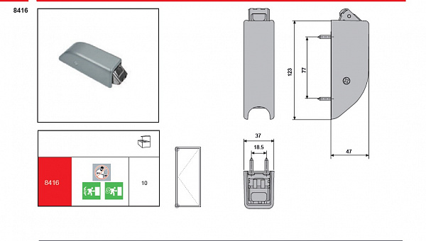 Укомплектован защелкой из нержавеющей стали с устройством автоматической блокировки. Подходит для использования на противопожарных дверях.