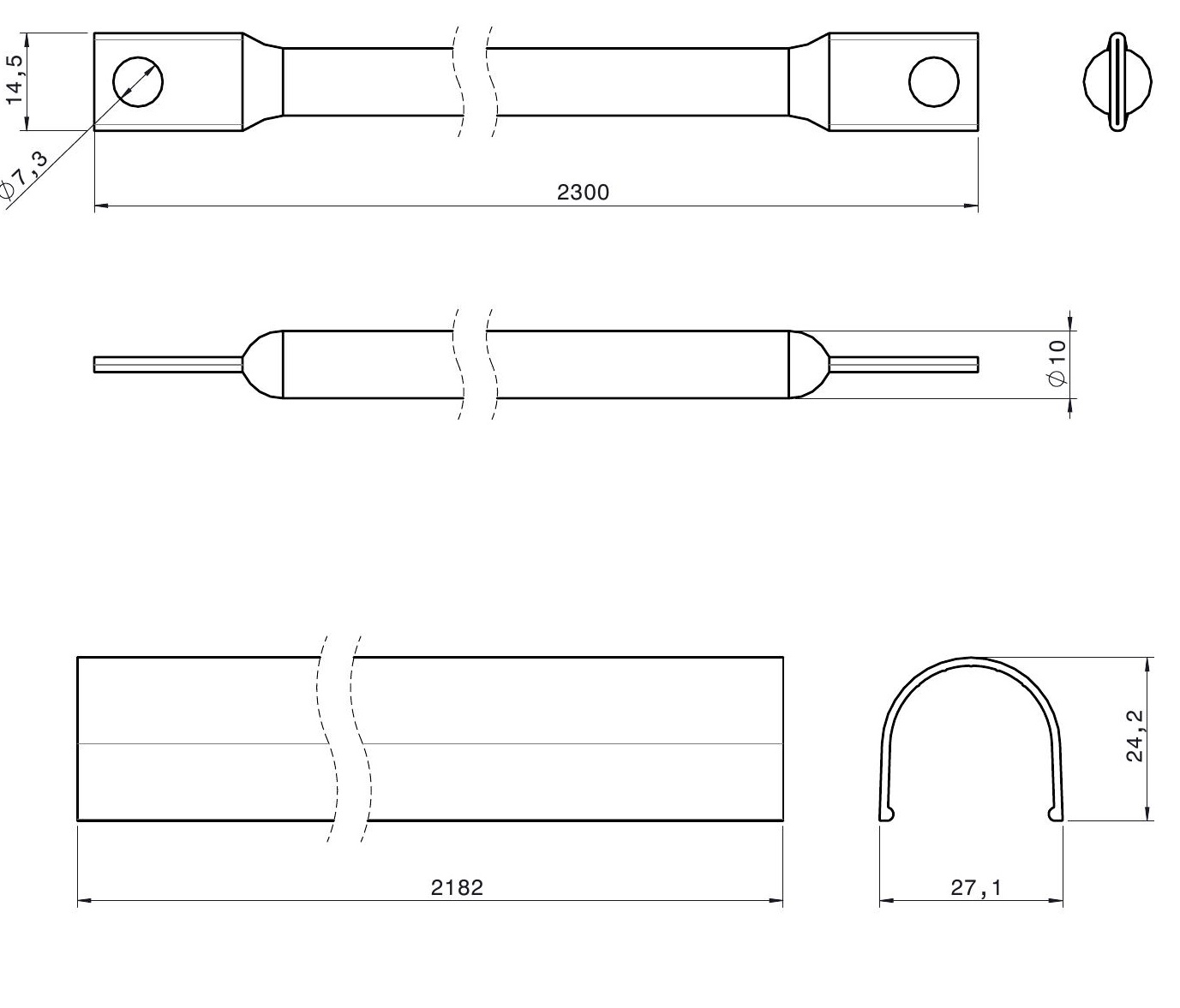 Соединительная штанга и закрывающий профиль из экструдированного алюминия. Она отличается быстрым соединением с центральным замком. Позволяет укомплектовать точками запирания двери с большой высотой.